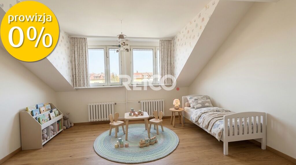 Poddasze: dwa pokoje w amfiladzie, pokój ze skosami, kuchnia,